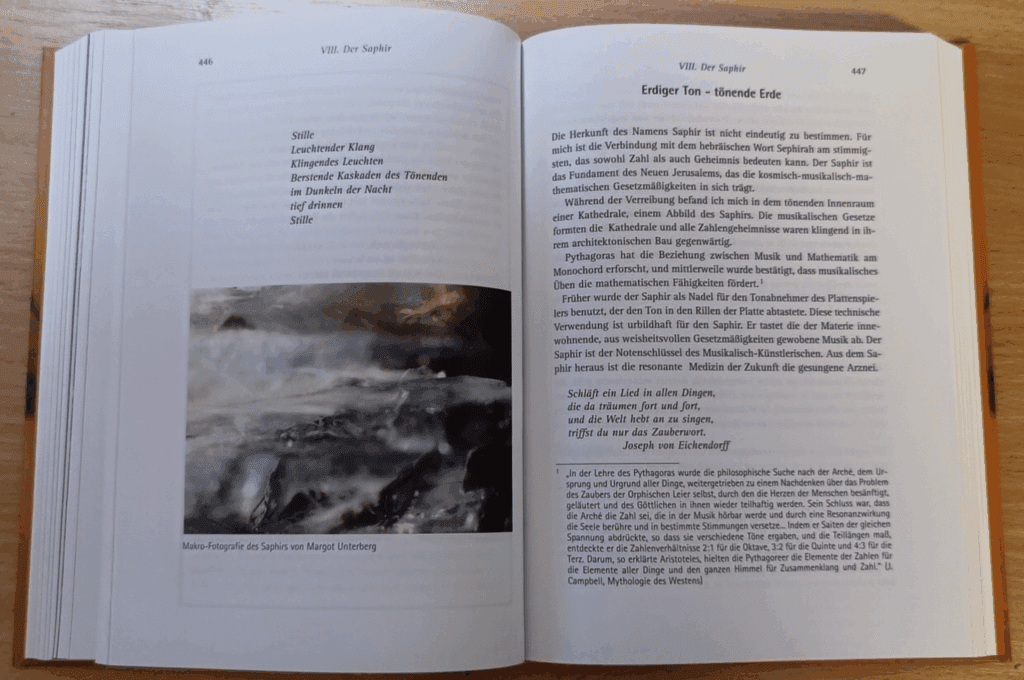Das Buch ist mit über 50 farbigen Bildern, Märchen und Gedichten wunderschön gestaltet, welche die thematischen Inhalte des jeweiligen Edelsteines künstlerisch vertiefen und ausdrücken.